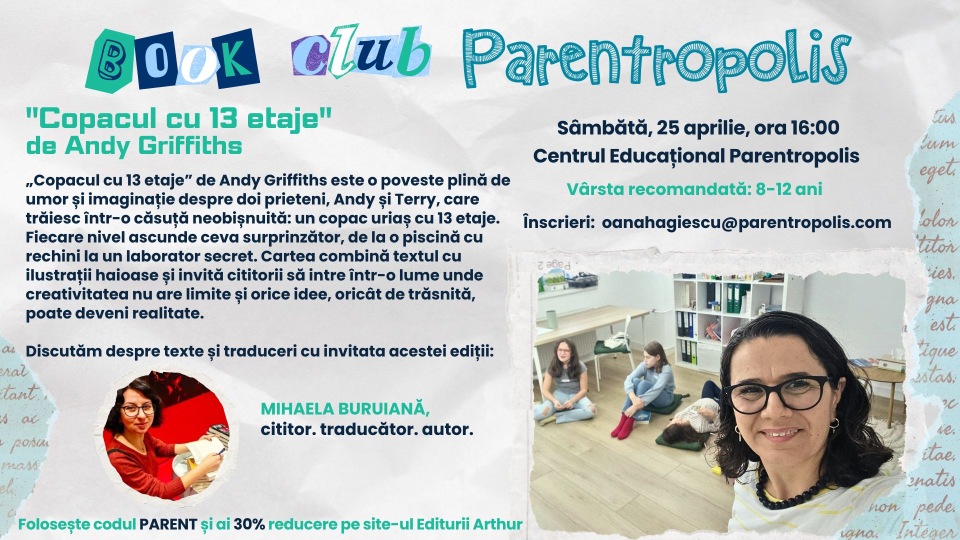Evenimentul are loc sâmbătă, 25 aprilie, ora 16:00, la Centrul Educațional Parentropolis (Piața Victoriei, Str. Buzești, Nr. 61).